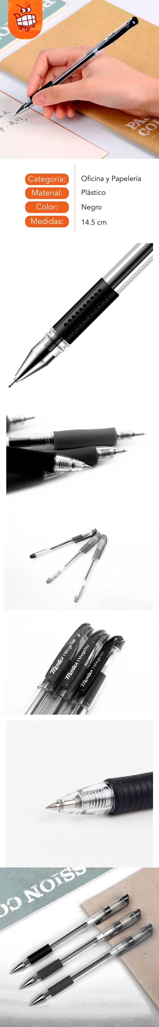 Pluma de gel de tinta negra